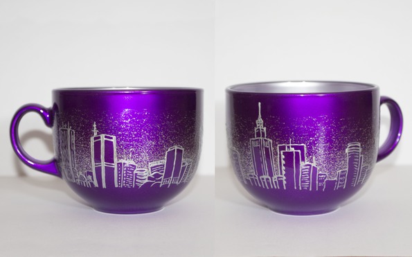 konturówka i farba brokatowa na emaliowanej szklance, Warszawa 2014